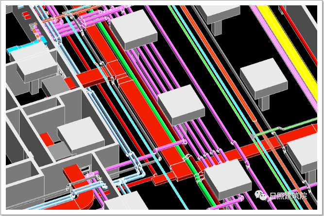 2018年,我院對(duì)莒縣杏林苑車庫(kù)項(xiàng)目進(jìn)行了BIM設(shè)計(jì),解決了諸多現(xiàn)場(chǎng)施工難題。通過(guò)BIM模型,我們成功解決設(shè)備管道沖突打架的問(wèn)題,同時(shí)可以讓人們直觀地看到車庫(kù)的每一個(gè)地方,提高項(xiàng)目質(zhì)量的同時(shí)避免了施工過(guò)程中的材料返工,大大節(jié)約了資金和時(shí)間的投入。